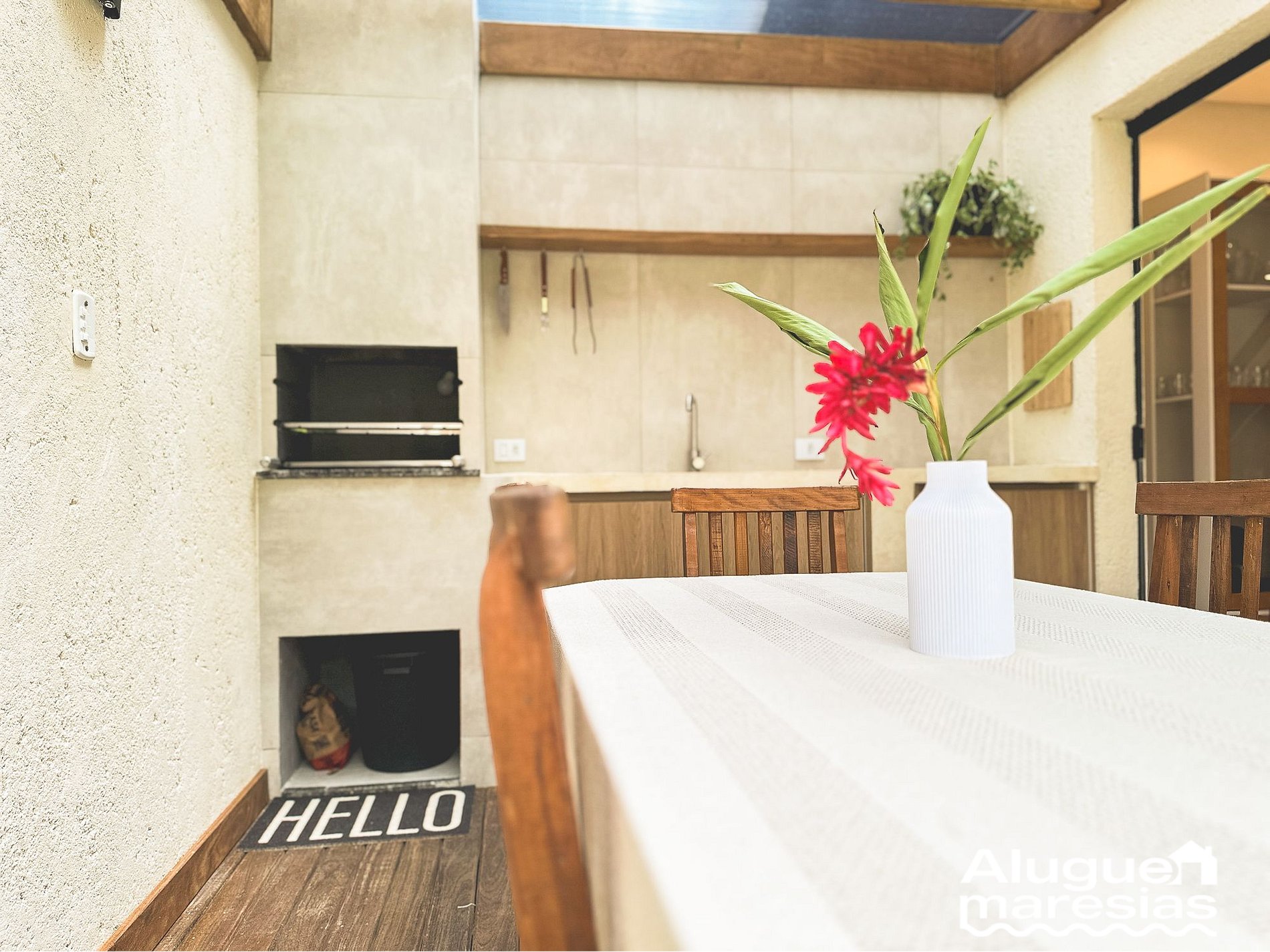 External Area: This is our special corner! It has a barbecue, private shower and a unique view of the region's mountains. The backyard is walled, with no neighbor on one side, providing greater privacy and peace. There is also a lawn with beach chairs, perfect for enjoying the morning sun and making your pets feel at ease.