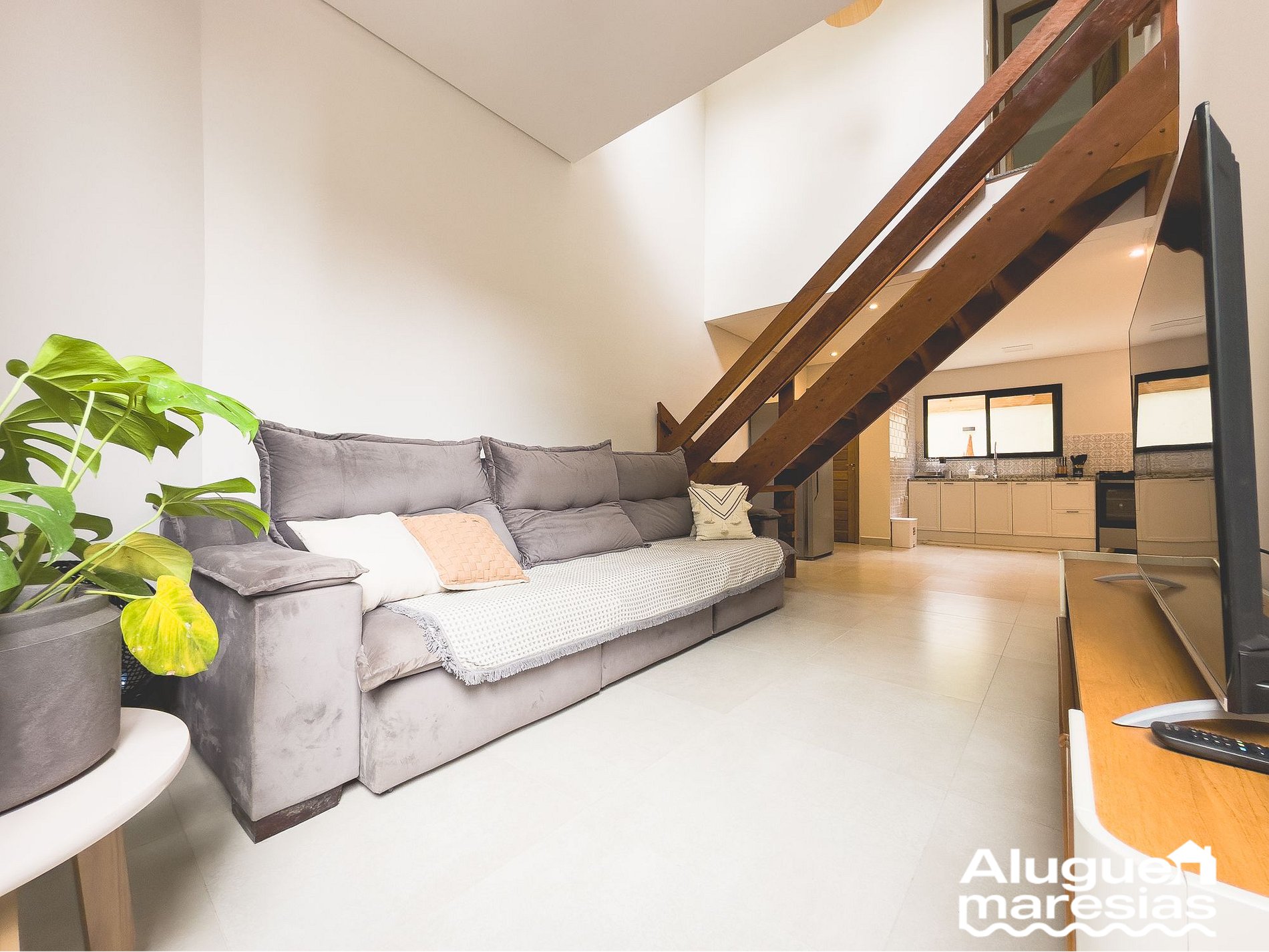 Large Living Room: Spacious and comfortable, it has a 58-inch Smart TV, a 3-meter retractable sofa that accommodates the whole family and 500 Mbps Wi-Fi, ensuring that you remain connected throughout the house