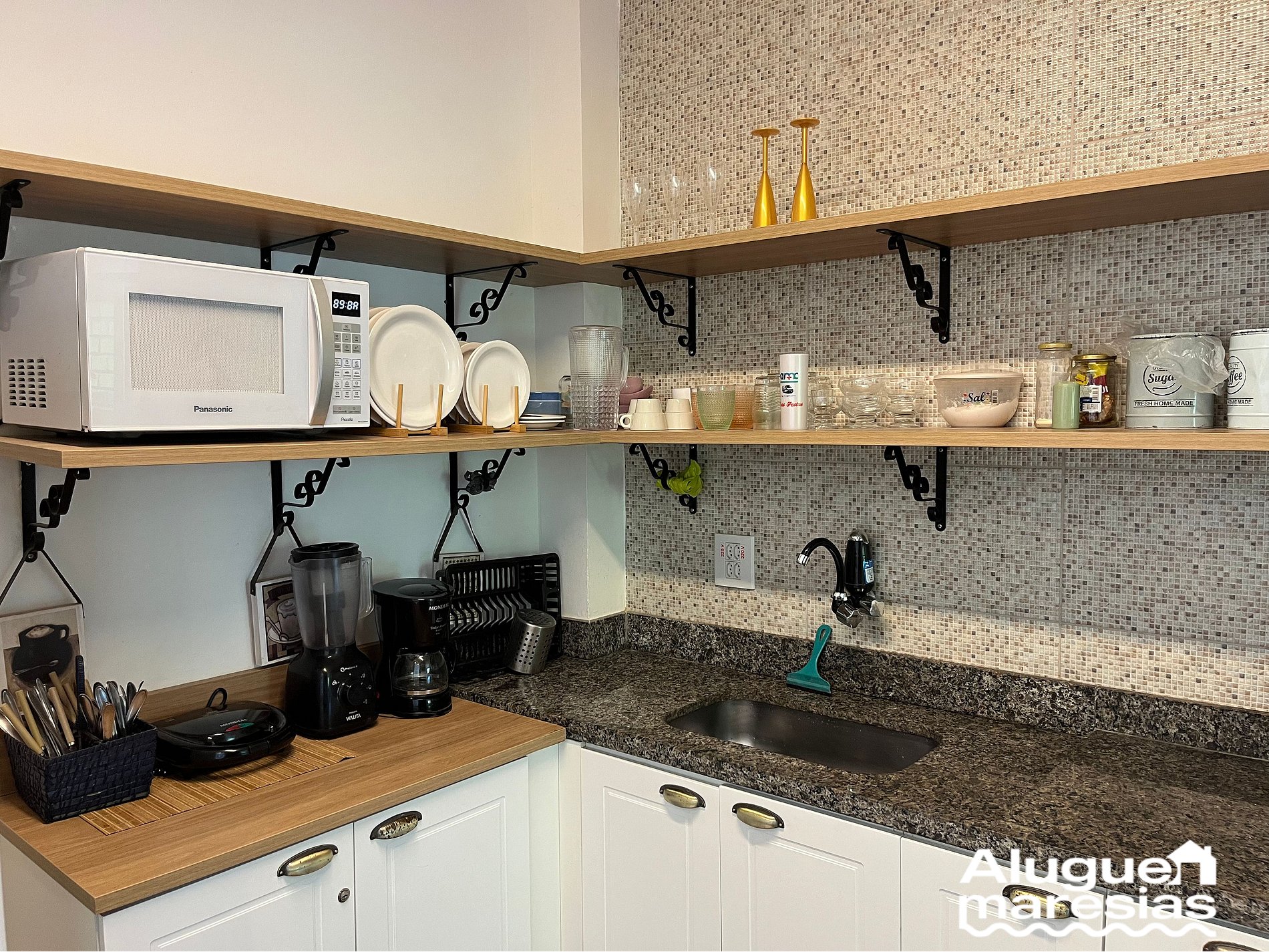 Appliances: refrigerator, stove, microwave, filter, coffee maker, blender, washing machine, hairdryer, and iron