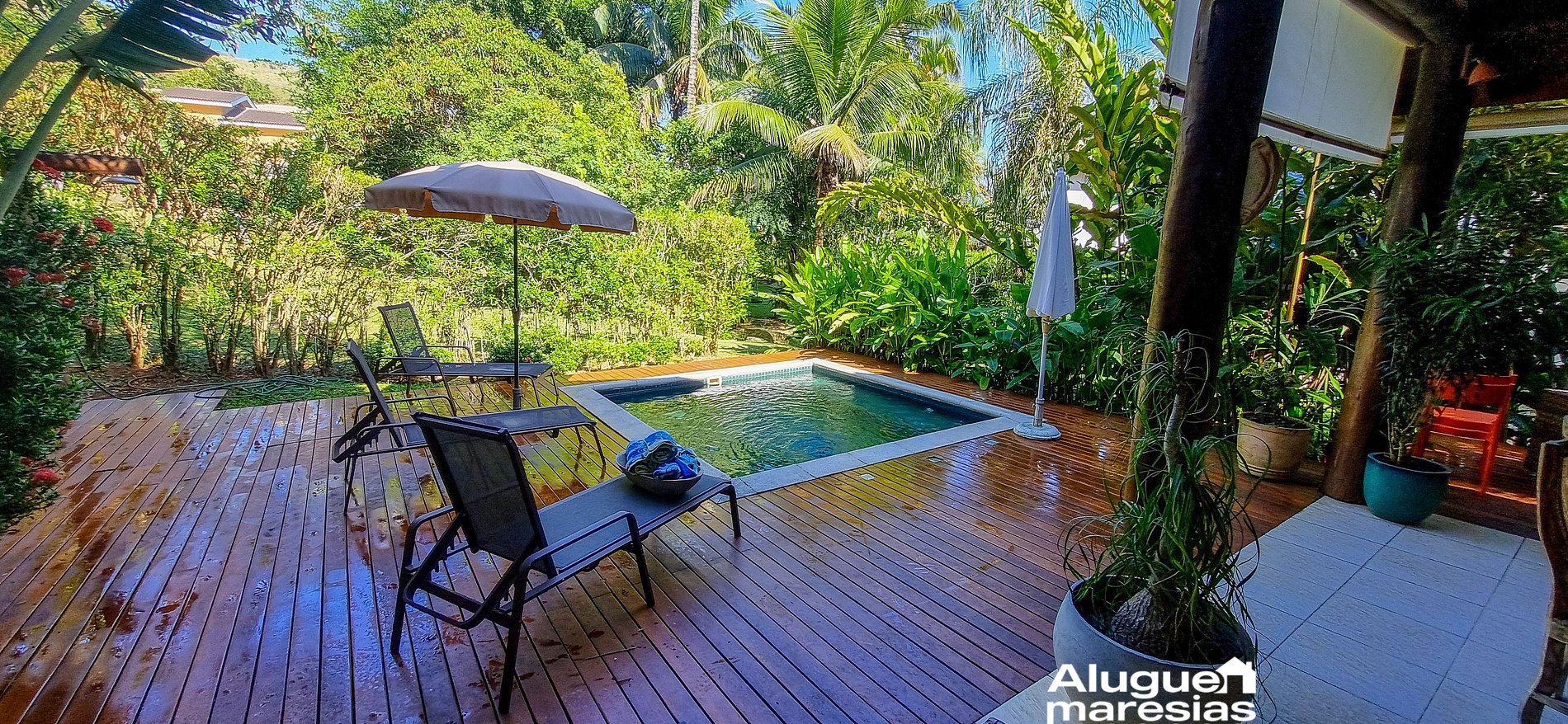OBSERVE LA CASA: Casa para quienes buscan comodidad y privacidad, con piscina y barbacoa privada, en una urbanización cerrada de alto nivel con completas instalaciones de ocio a 400 m de la playa de Paúba.