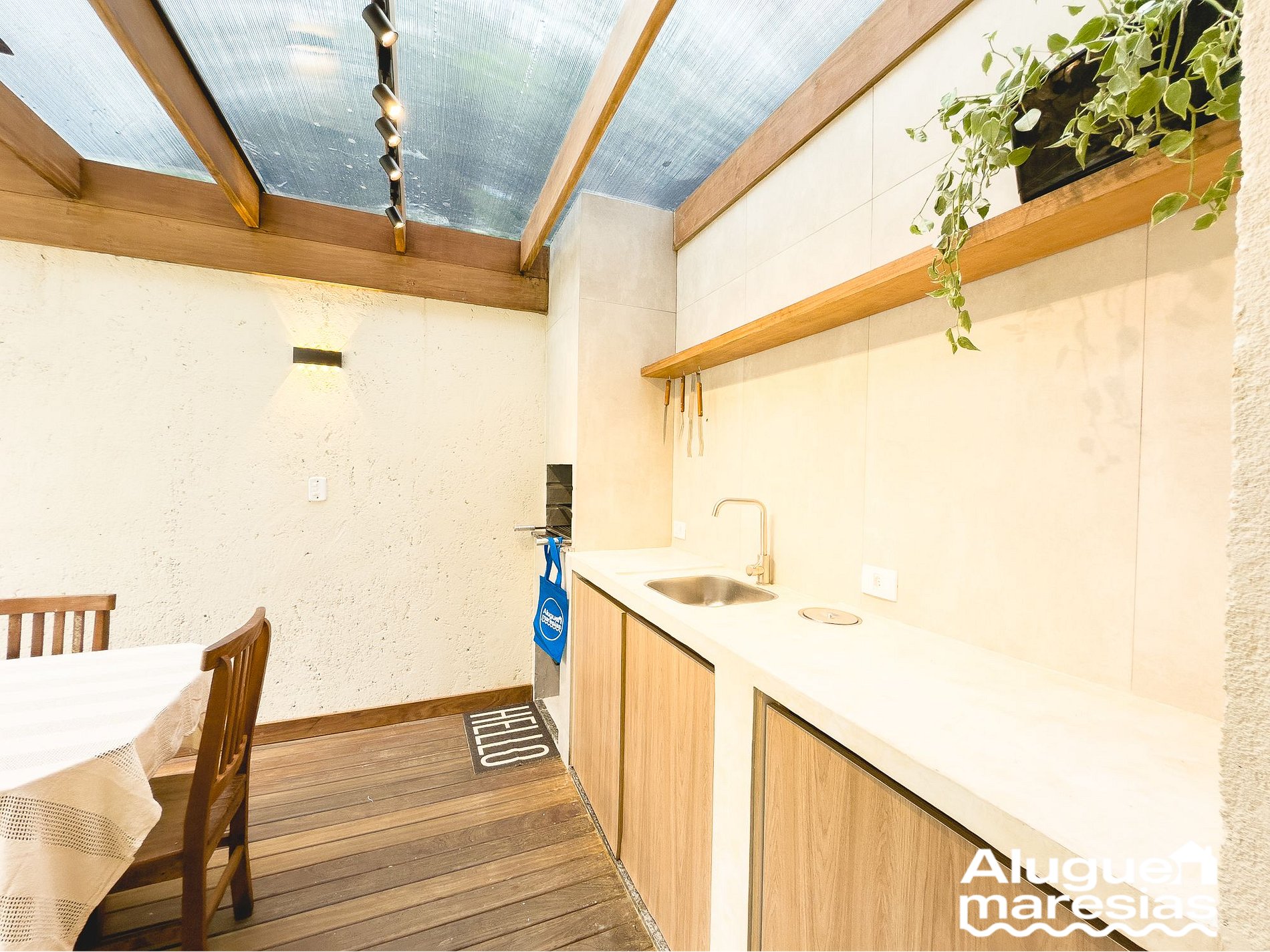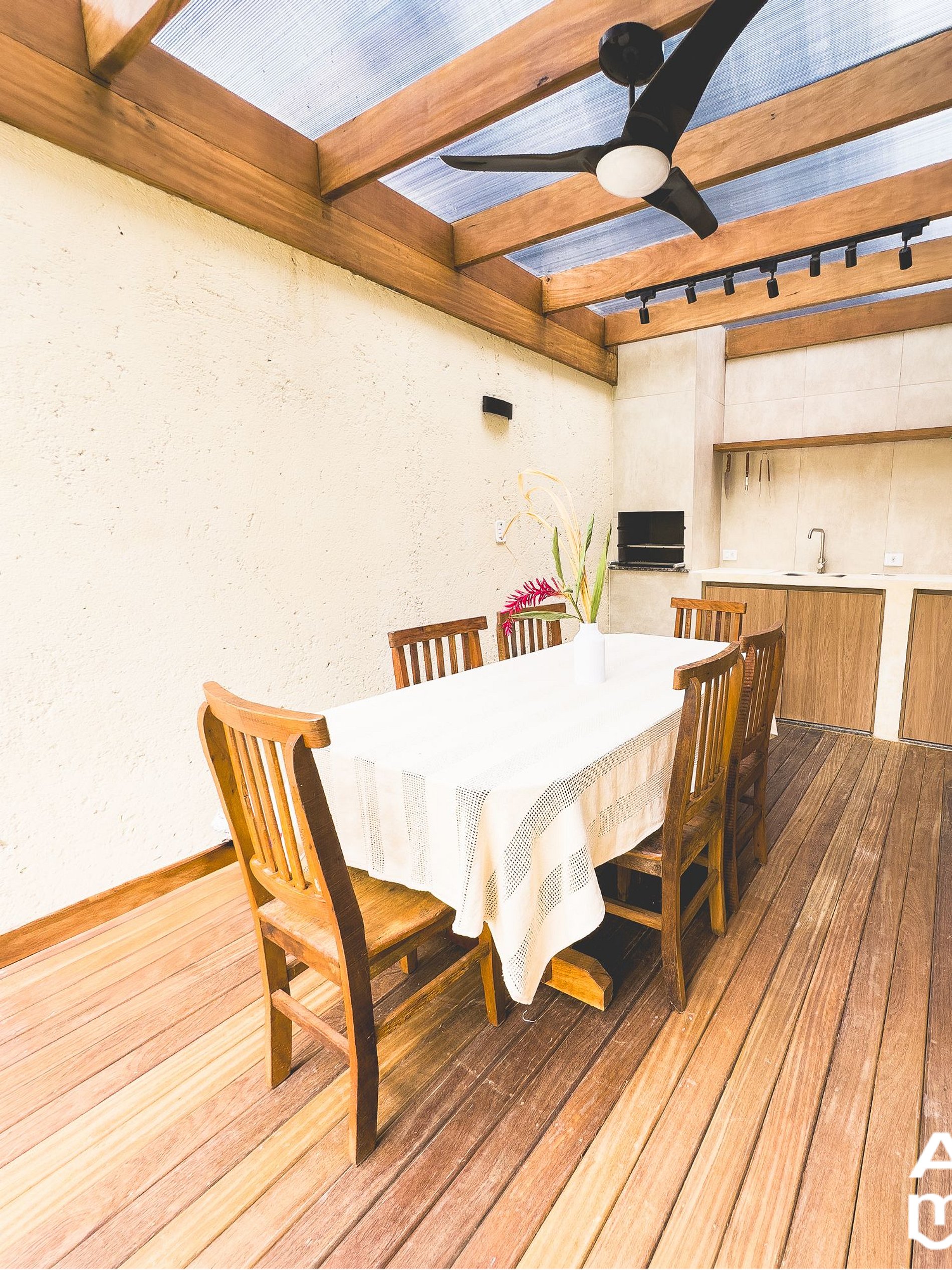Área Externa: ¡Éste es nuestro rincón especial! Cuenta con asador, regadera privada y una vista única a las montañas de la región. El patio trasero está amurallado, sin vecinos a un lado, lo que proporciona mayor privacidad y paz. También hay un césped con sillas de playa, perfecto para disfrutar del sol de la mañana y hacer que tus mascotas se sientan a gusto.