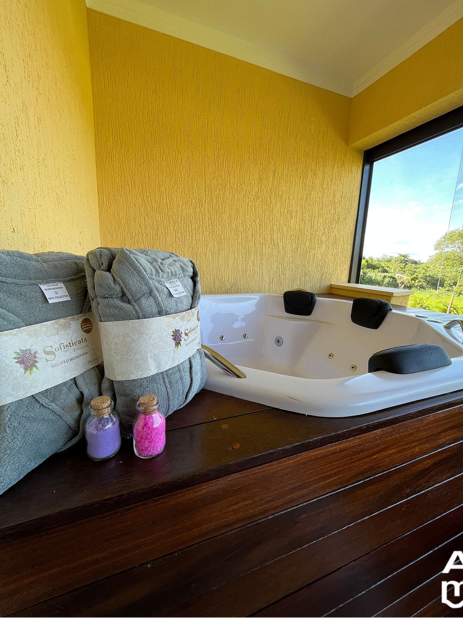 Un espacio que te mostrará cómo la playa puede ser el momento perfecto para relajarte y desconectar en el jacuzzi con sales de baño y albornoces