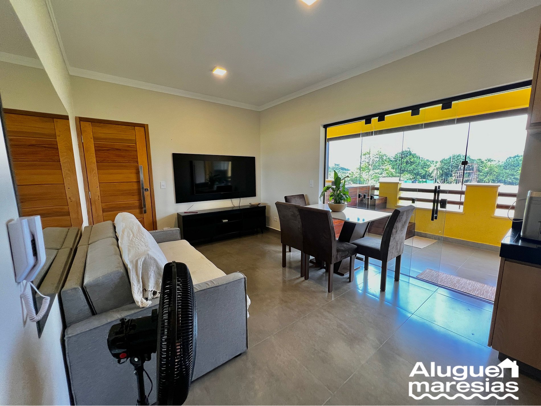 En la sala comedor hay un sofá (cama), SMART TV 43'' (canales por cable), Wi-Fi, ventilador portátil y mesa de comedor (capacidad para 4 personas)