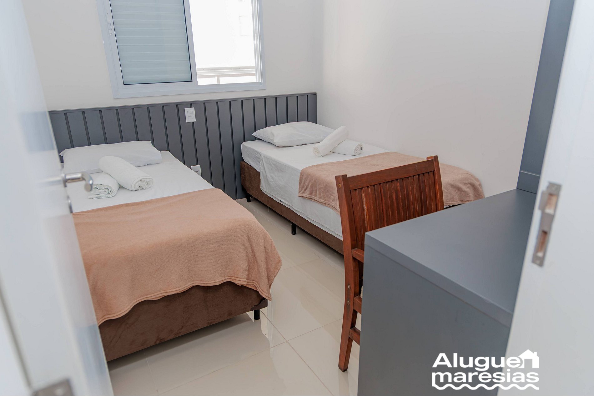 • Cuarto 2: dos camas de solteiro, armário, mesa home-office