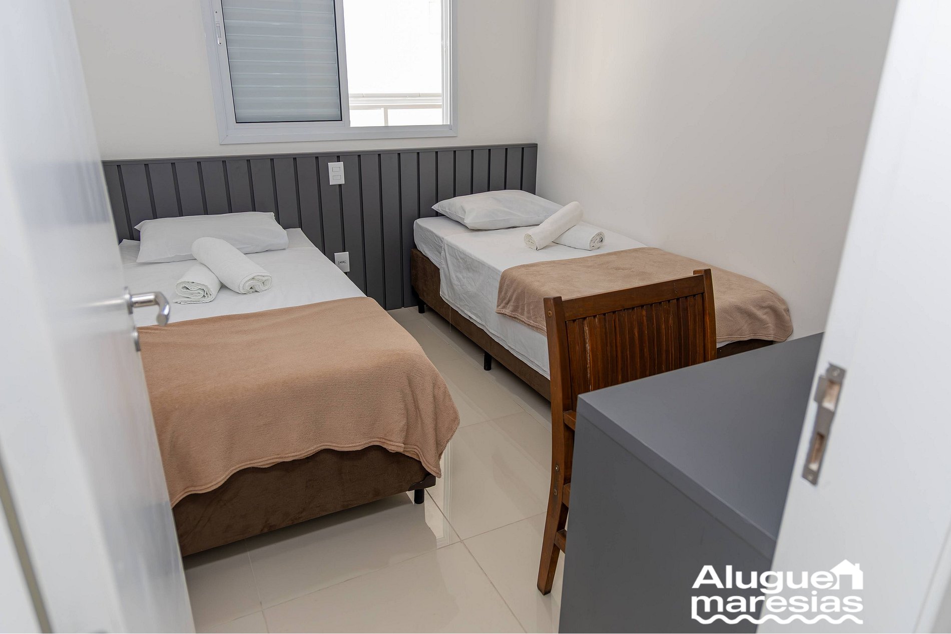 • Cuarto 2: dos camas de solteiro, armário, mesa home-office