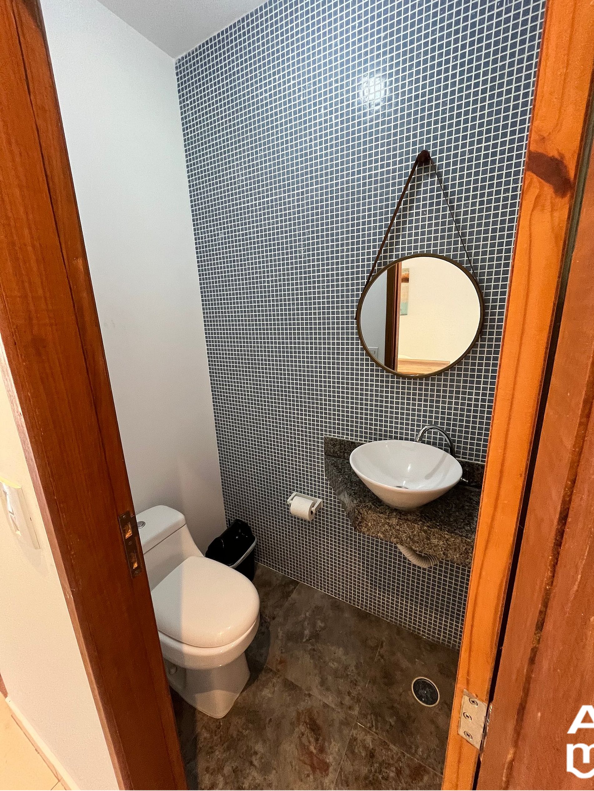 • Segundo andar: 2 quartos (1 suíte) com ar-condicionado e ventilador de teto, mezanino com home office e vista para a piscina do condomínio.